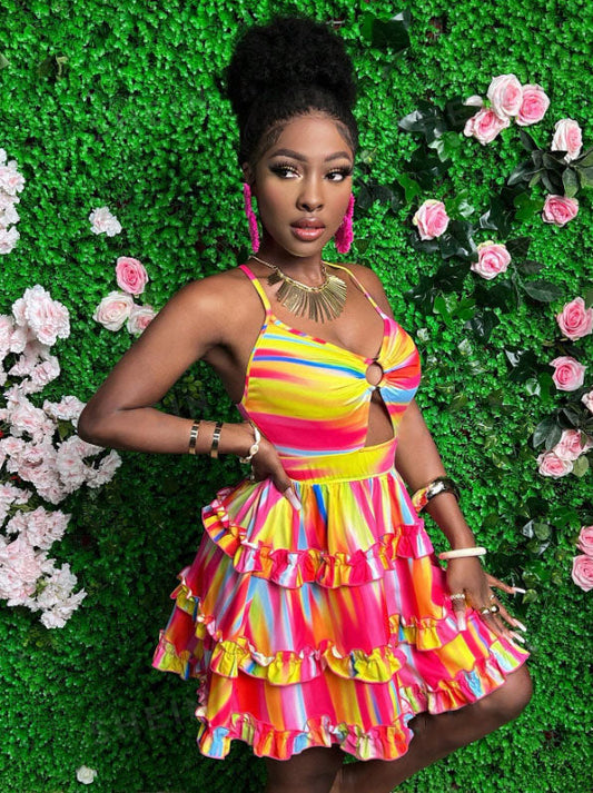 Colour Graphic Backless Beach Dress