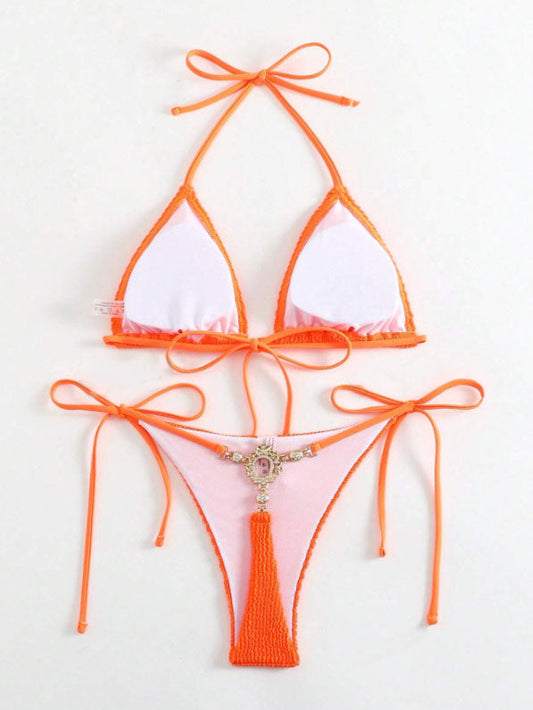 Textured Halter Tie Bikini Set