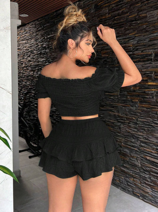 Ruffled Strap Crop Top & Ruffle Trim Shorts Set