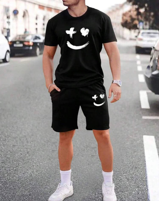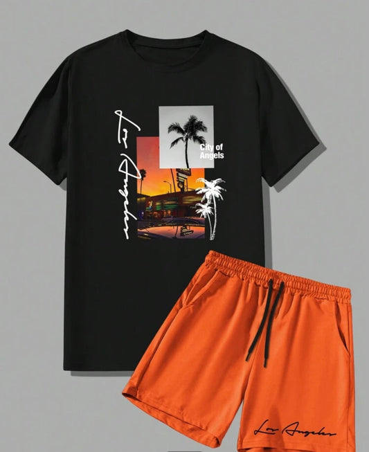Graphic Tee & Drawstring Waist Shorts